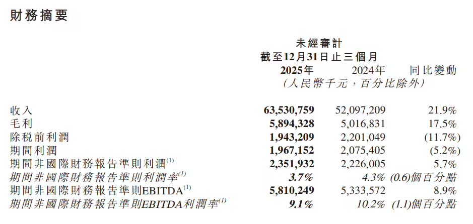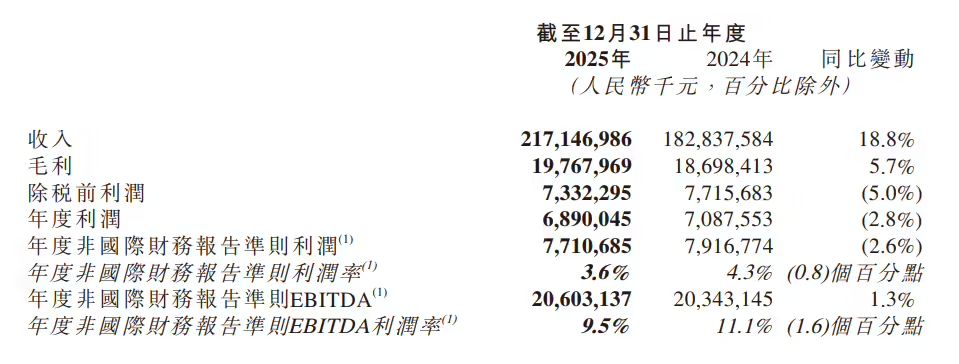 2025全年总收入达2171亿元,同比增长18.8%;净利润77.1亿元,同比下滑2.6%。