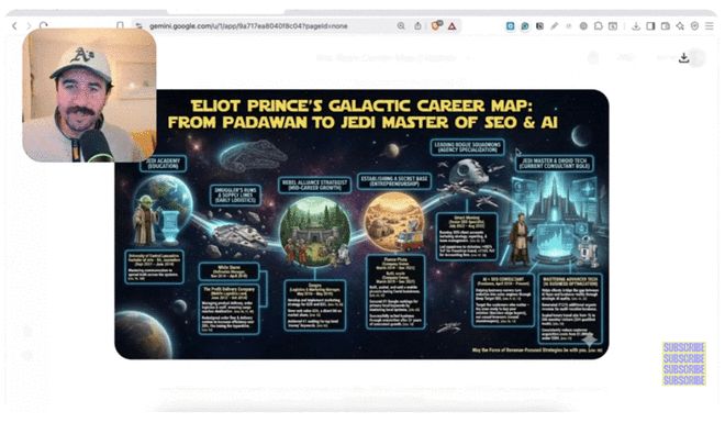 测试人员给出了涉及视觉、分析和创意融合的任务:根据他上传的个人简历,以《星球大战》为主题生成一份有趣的职业生涯信息图。