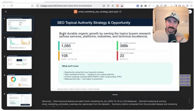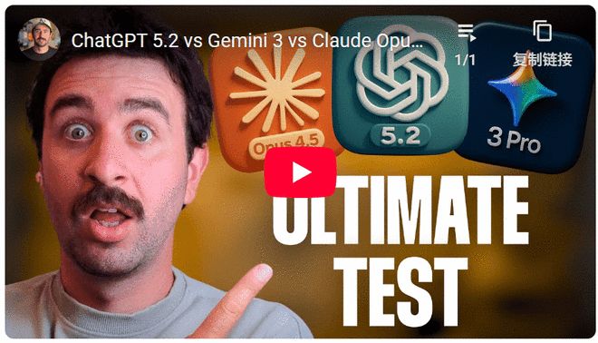 YouTube网红博主埃利奥特·普林斯(EliotPrince)则对三大模型进行了一番深度对比评测。他将GPT5.2、ClaudeOpus4.5和GoogleGemini这三大模型置于复杂的专业任务中进行检验,包括制定SEO(搜索引擎优化)策略、生成PPT和编码。