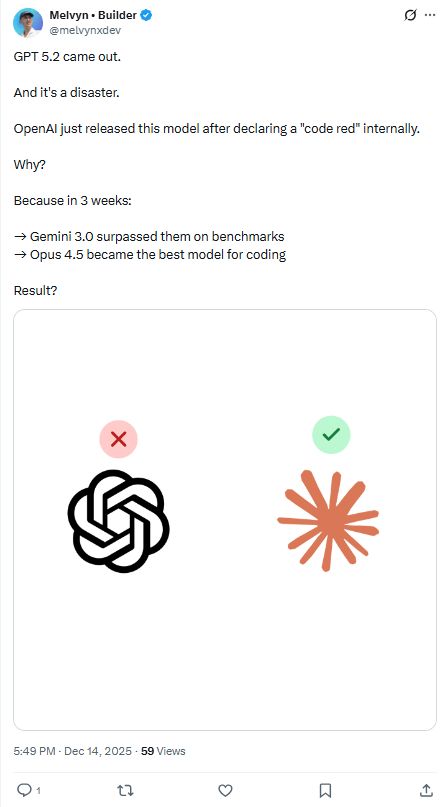 科技博主@melvynxdev甚至断言GPT5.2的发布简直是一场灾难。
