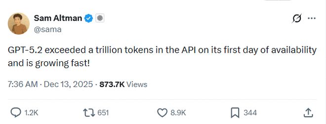 甚至当OpenAICEO萨姆奥特曼(SamAltman)透露“GPT-5.2在API上线首日即突破万亿tokens使用量,且增长势头迅猛”时,不少用户纷纷跟帖吐槽:“词符不等于情谊,指标不等于记忆”、“第一天就消耗了万亿Token,他们竟然还有脸欢呼雀跃”。