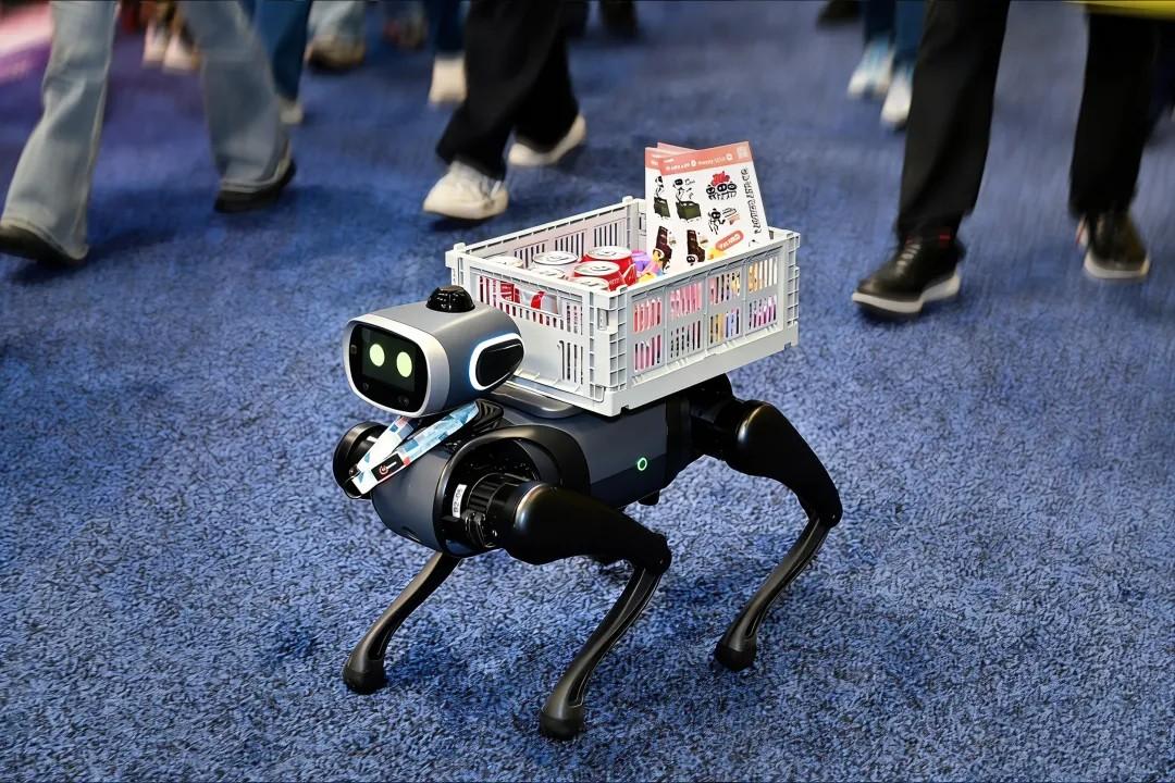 在四天展期内,它成为了全场“最忙”的机器人:背上小筐化身“服务员”,在拥挤人群间自主穿行派送饮料;挂上拖钩,稳稳拉动载有50多斤水桶的露营车;甚至架起运动相机,作为“摄影师”智能跟拍采访过程。