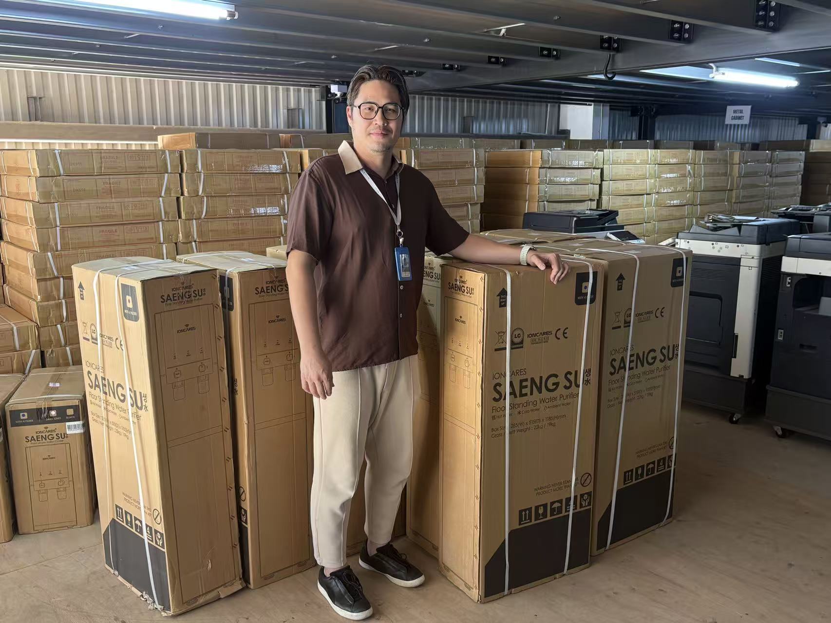 除了打印机,还有净水器、空气净化器、冷气设备,甚至智能电视。不同设备被分区摆放,纸箱、机器和金属架混在一起,有一股很典型的仓储味道——既有新设备的塑料气味,也夹着一点油墨和机器的味道。