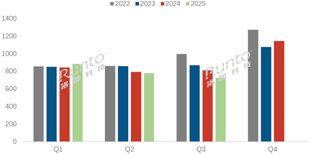 洛图数据显示,2025 年第三季度中国电视市场品牌整机出货量 727.0 万台,同比下降 10.4%。其核心原因在于市场长期需求刚性不足,直接诱因则是国补政策调整及后续连锁效应。另据市调机构Omdia观察,2025 年第四季度中国电视制造商计划将面板采购量下调约 9%,Q4 电视市场或面临进一步下行压力。