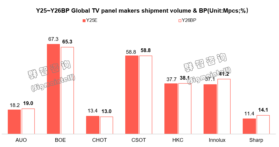 中国台湾双雄则面临产能瓶颈,策略更趋差异化。友达(AUO)稳守1902万片目标,深耕43英寸、55英寸等成熟尺寸;群创(Innolux)则规划了4117万片的积极目标,但仍以40英寸等中小尺寸为主力,与大陆厂商形成错位竞争。