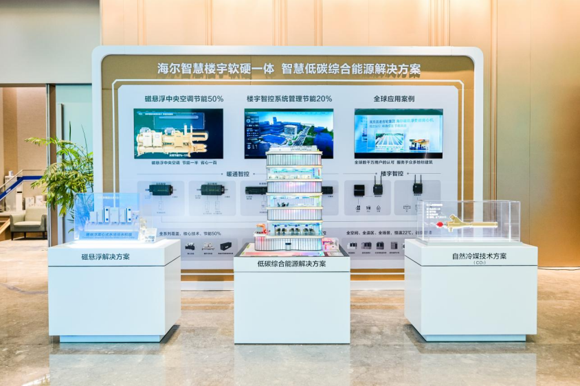 在智慧楼宇场景,海尔智家自主研发的“楼宇大脑”,能结合建筑耗能情况与外部天气变化,实现能源自主分配调节。仅磁悬浮空调方案,已累计节能45亿度电,减少二氧化碳排放约400万吨,相当于种下2.18亿棵树。