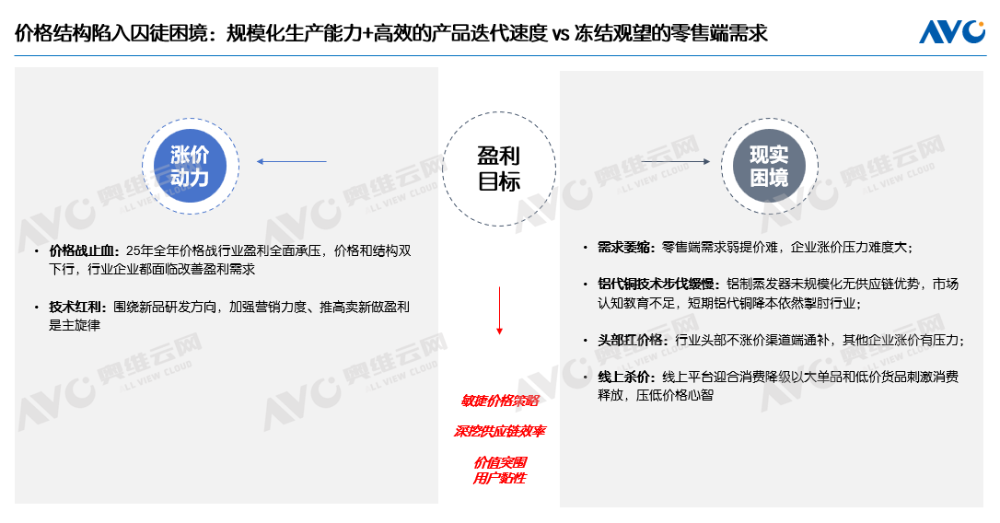 从行业逻辑来看,企业存在极强的涨价动力。经历了去年惨烈的价格战,行业整体盈利水平已跌至冰点,结构下行的局面让绝大多数企业处于微利甚至亏损的边缘。进入2026年,提结构、改善盈利能力成为企业的重要目标,叠加AI产品概念,推新卖高是摆脱困境的主旋律。而现实的复杂性在于,盈利并非企业一厢情愿涨价就能实现。