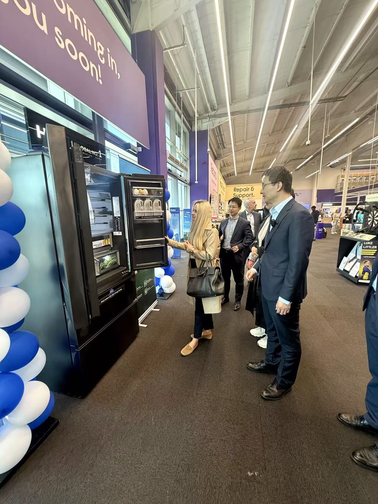 当天,Collette Green的一位朋友参加了发布会,并拍摄了Horizon冰箱的保鲜对比视频。朋友分享体验后,Collette Green决定亲自到Currys门店体验。她逐一打开冰箱门,查看空间、分区、制冰功能,并观察新技术对食物新鲜保持的效果。最终,她完成了购买,也成为海尔在英国Currys门店的首批用户。