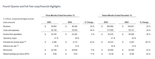 1月28日,Meta公布了2025财年第四财季的业绩。财报显示,Meta在第四财季Meta营收598.93美元,较去年同期增长24%;净利润为227.68亿美元,同比增长9%;摊薄后每股收益8.88美元,高于市场预期的8.23美元。