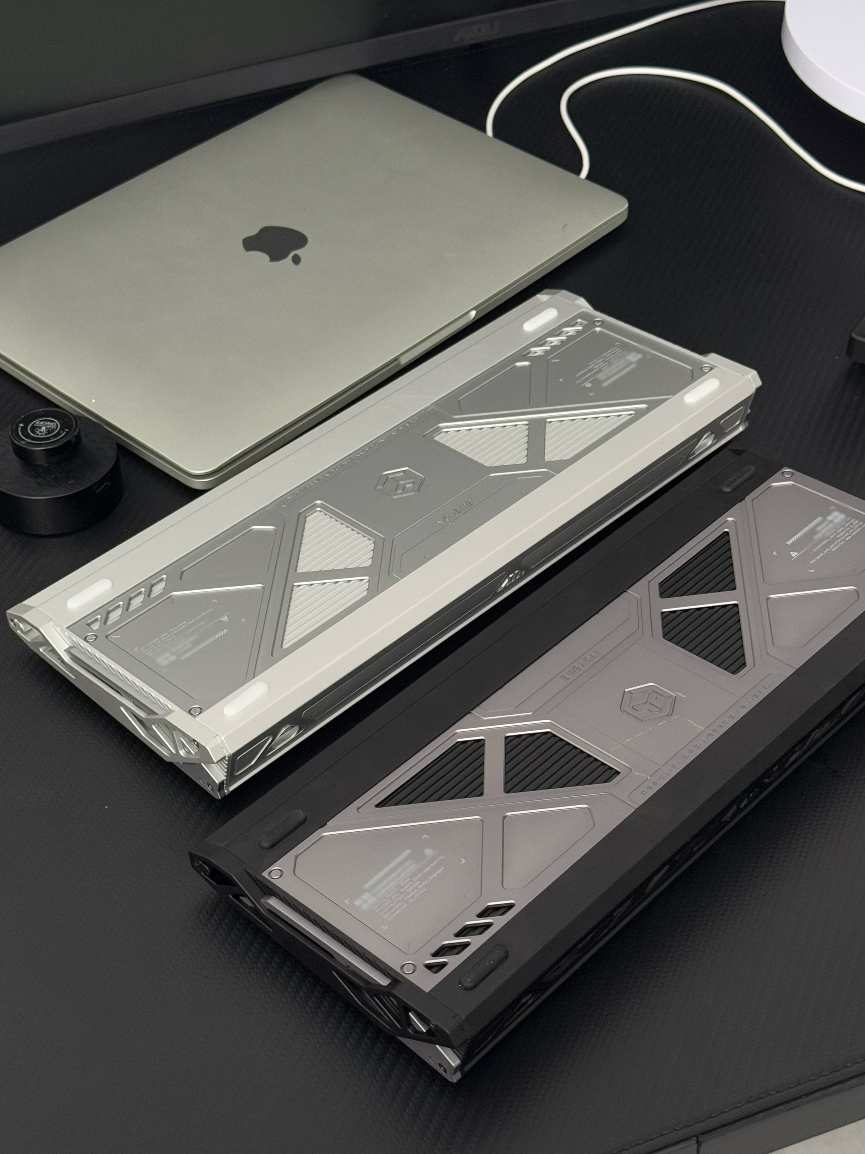 作为全球首款搭载该32K方案的终端产品,前行者即将推出的新旗舰电竞磁轴键盘自然成为了业界焦点。近期,在小红书、抖音等社交平台已有网友爆料了前行者新款磁轴键盘的局部细节图。从泄露的图片来看,新品在设计语言、结构用料上均与前行者往代产品有显著区别,无论是更具质感的金属上盖,USB接口、键盘顶部的锻碳纹路、还是金属镂空侧板、带有前行者logo的金属背板设计,都暗示着这将是一款定位顶级的重磅产品。